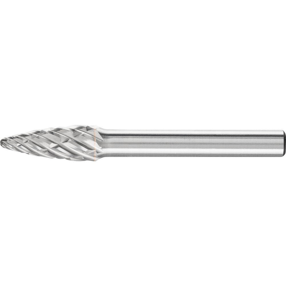 Spetsformad fil med rundad topp enligt DIN 8032. SL = skaftlängd (långt stålskaft)