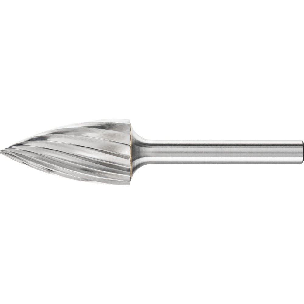 Spetsformad fil enligt DIN 8032 med tandning enligt DIN 8033, planad spets. GL = totallängd (homogen hårdmetall) SL = skaftlängd (långt stålskaft)