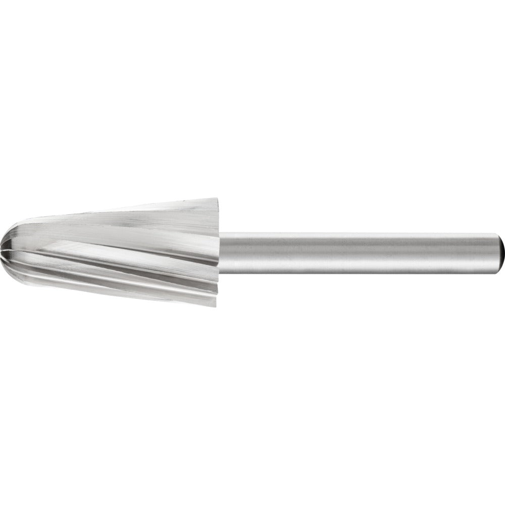 Koniskt formad fil med rundad topp.