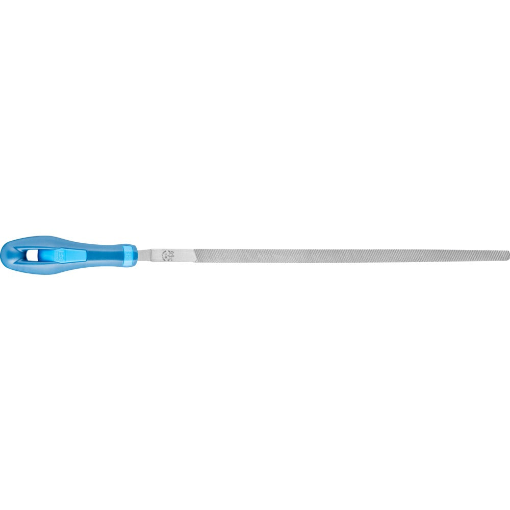 Kvadratisk fil, avsmalnande form, huggning på fyra sidor. Med tånge. Form D enligt DIN 7261. För filning av vinkelprofiler.