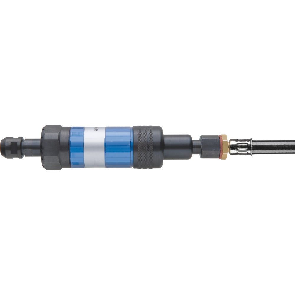 Prestanda: Liten konstruktion. Lätt, smidig. Konstant kraftöverföring genom centrifugalregulator. Ingår: 3 m tilluftsslang med yttergänga 1/4” och slangnippel med gänga (STGI), spännhylsa 6 mm, 2 st spännycklar.