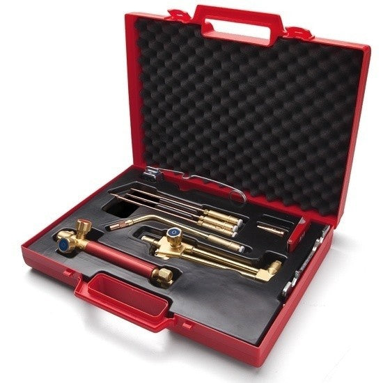 Lådan är lätt att bära med sig och innehåller ett runt handtag och flexibla svetsinsatser som lämpar sig för svetsning eller lödning av rör. En gaständare och utrustning för skärning och värmning ingår också.